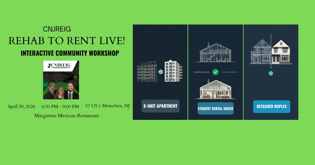 Meet us here: https://www.meetup.com/CENTRAL-NJ-Real-Estate-Investment-Group